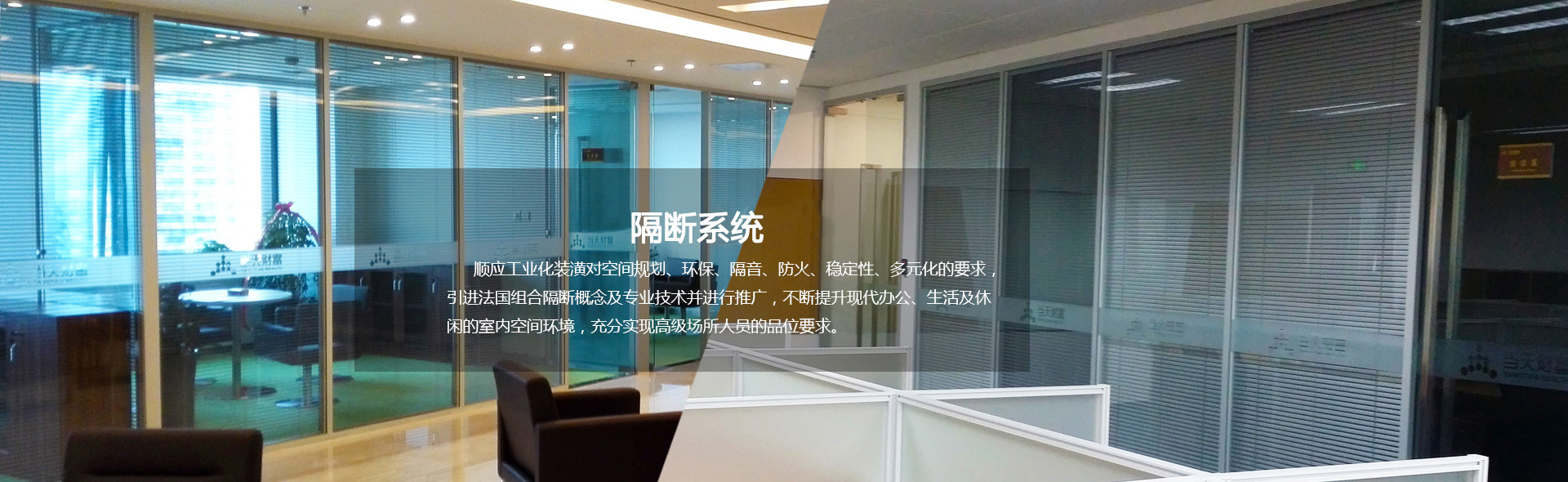 4、防火好 隔斷系統全部由金屬結構組成,玻璃、彩鋼板等材料同樣具有防火性,隔斷系統材料的抗火性能高。